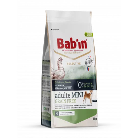 1 paquet de 3 kg de croquettes sans céréales pour chien Bab’in