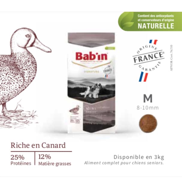 -La recette de croquette pour chiens âgés Bab’in est pensée et formulée pour répondre aux besoins nutritionnels de votre chien en phase senior, de petite taille.