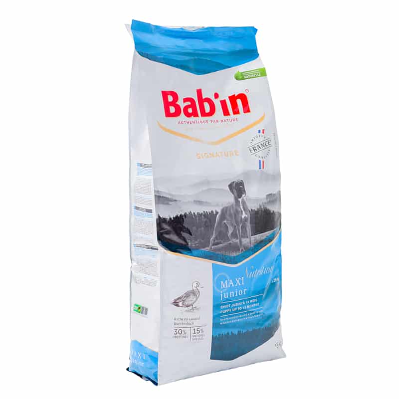 Les croquettes pour chiot fabriquées en France Bab’in Maxi Junior sont spécifiquement élaborées pour les chiots de grande taille dés 4 mois et dont le poids adulte sera supérieur à 25 kg. Elles sont composées de 27%(poulet).
