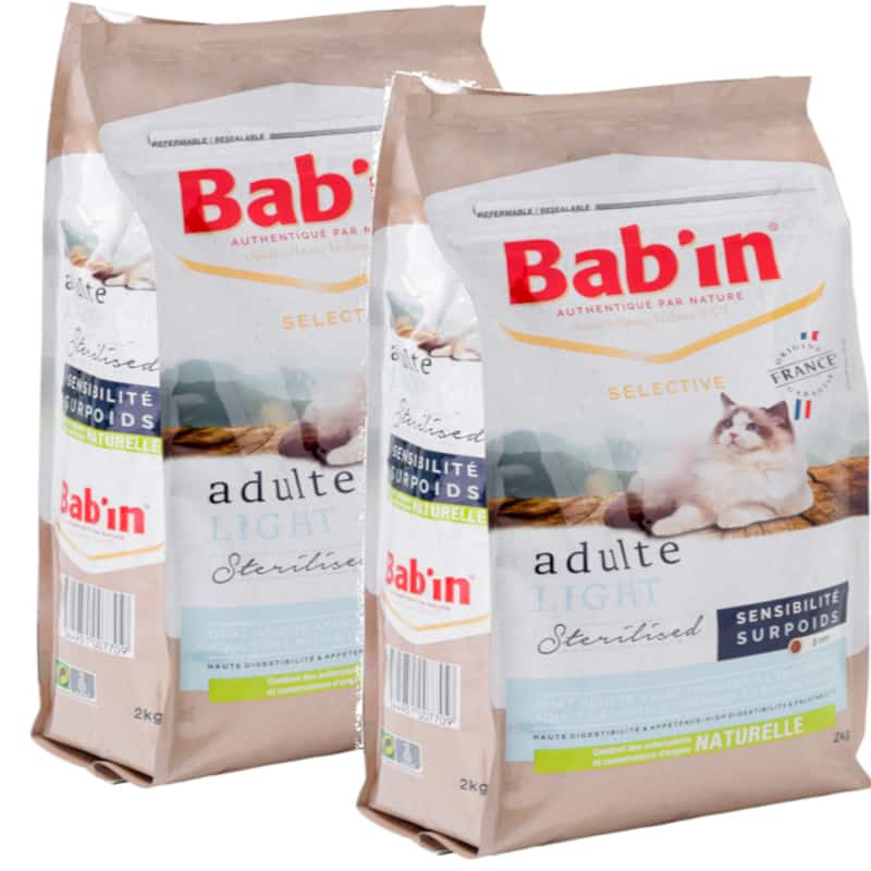 Pour faciliter la perte de poids, l’ajout de L-carnitine est incorporé dans la recette, permettant ainsi de mieux véhiculer le gras et d’être plus facilement éliminer par le chat.