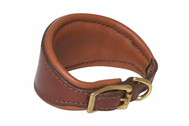 Le collier cuir pour lévrier, intérieur doublé en veau pour plus de confort et de souplesse est de couleur CHÂTAIGNE.