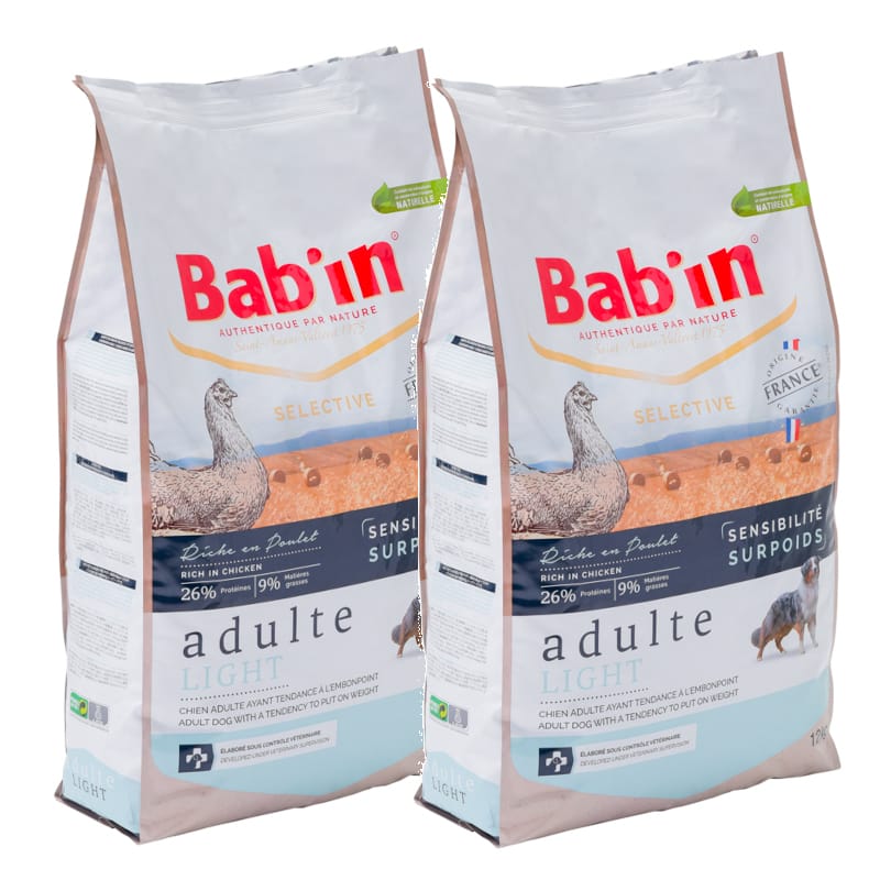 Les croquettes pour chien BAB’IN LIGHT fabriquées en France sont hautement digestibles et sont conçues spécifiquement pour les chiens qui présentent une surcharge pondérale.