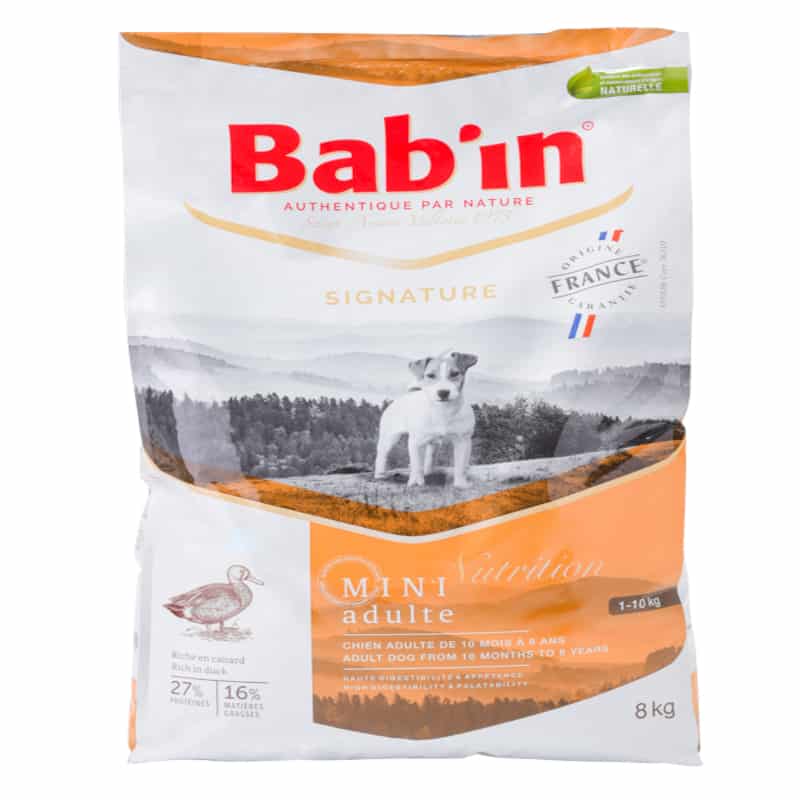 Les croquettes pour chien de petite taille, BAB’IN Mini Adult sont fabriquées en France dans le sud-ouest. Les chiens adulte de petites taille de 1 à 10 kg ont besoin d’un apport en énergie suffisamment élevé pour répondre à la demande de leur métabolisme.